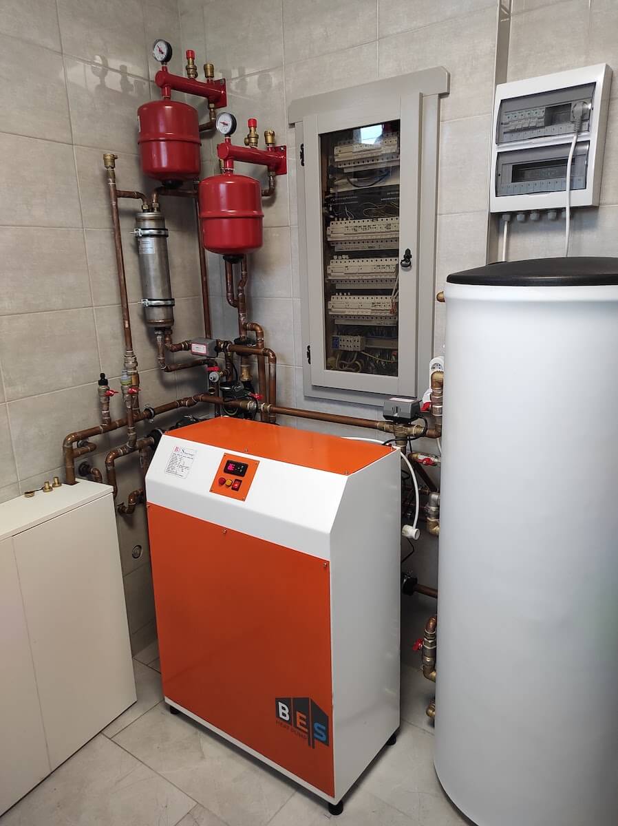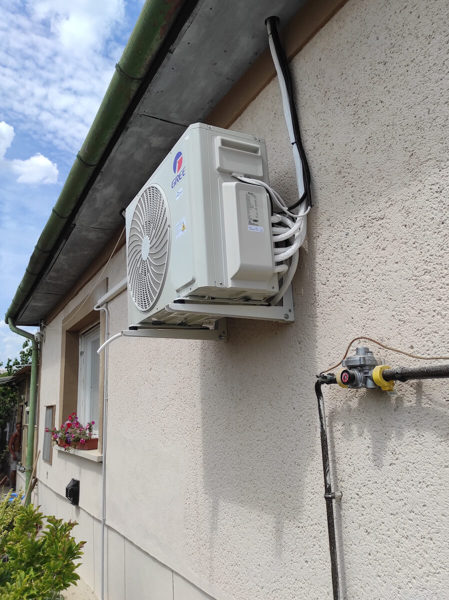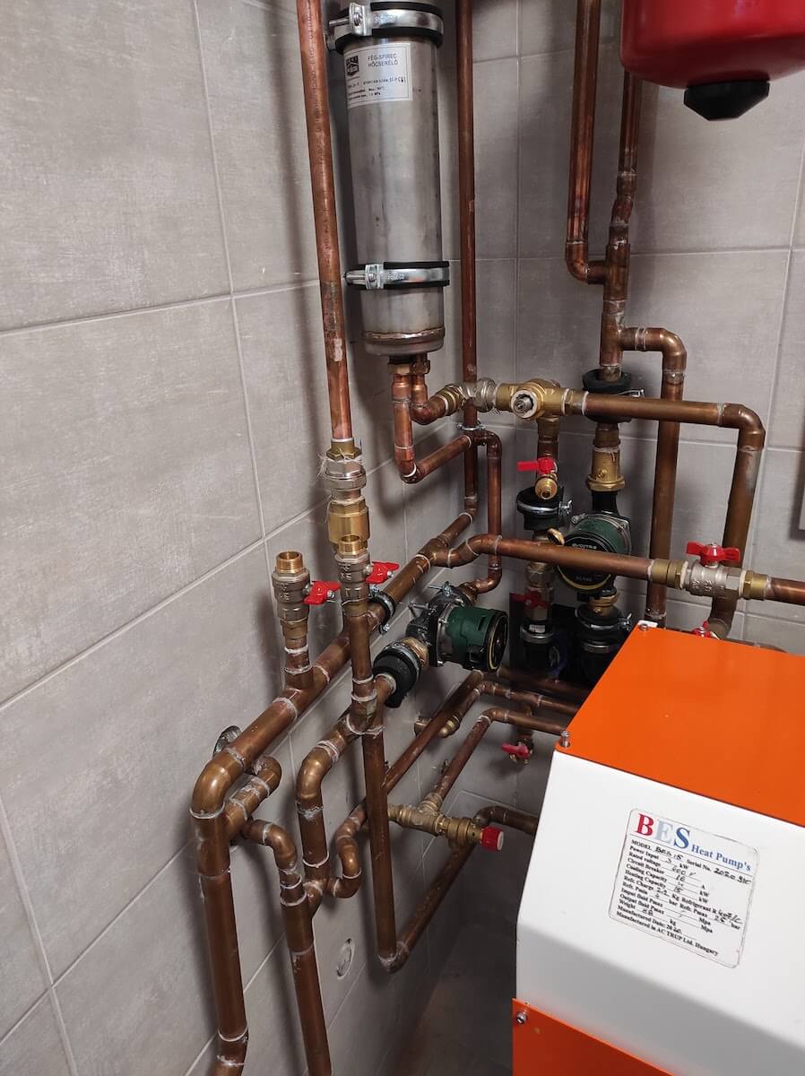 Jelen esetben egy korábban kialakított kondenzációs kazánnal rendelkező fűtési rendszerhez lett telepítve egy hőszivattyú. Így a rendszer a legoptimálisabban fog dolgozni, hiszen -10 C fok alatt a gázkazán fűt, máskor a hőszivattyú. Ez a rendszer alkalmas nyáron az épület hűtésére is.