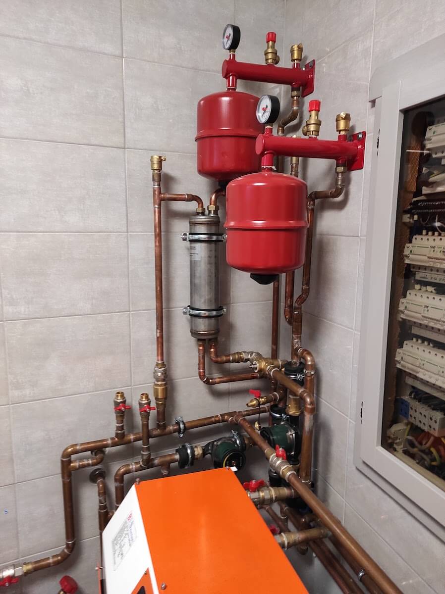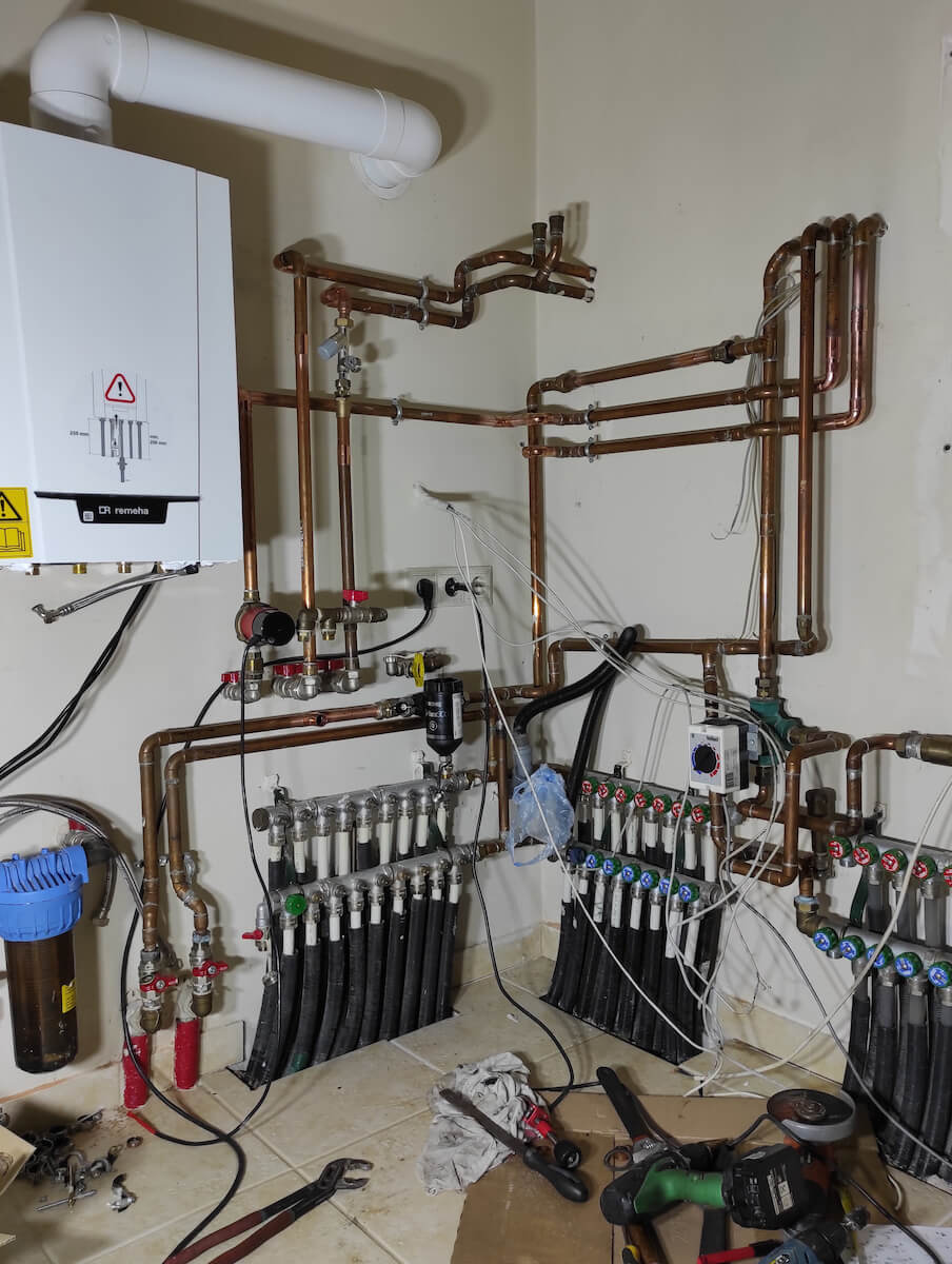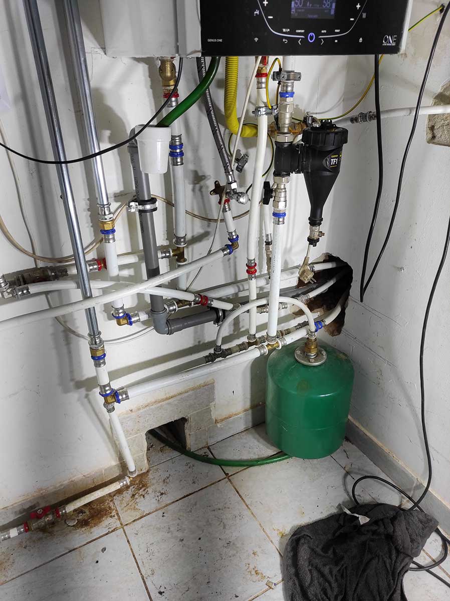 Jelen esetben egy korábban kialakított kondenzációs kazánnal rendelkező fűtési rendszerhez lett telepítve egy hőszivattyú. Így a rendszer a legoptimálisabban fog dolgozni, hiszen -10 C fok alatt a gázkazán fűt, máskor a hőszivattyú. Ez a rendszer alkalmas nyáron az épület hűtésére is.